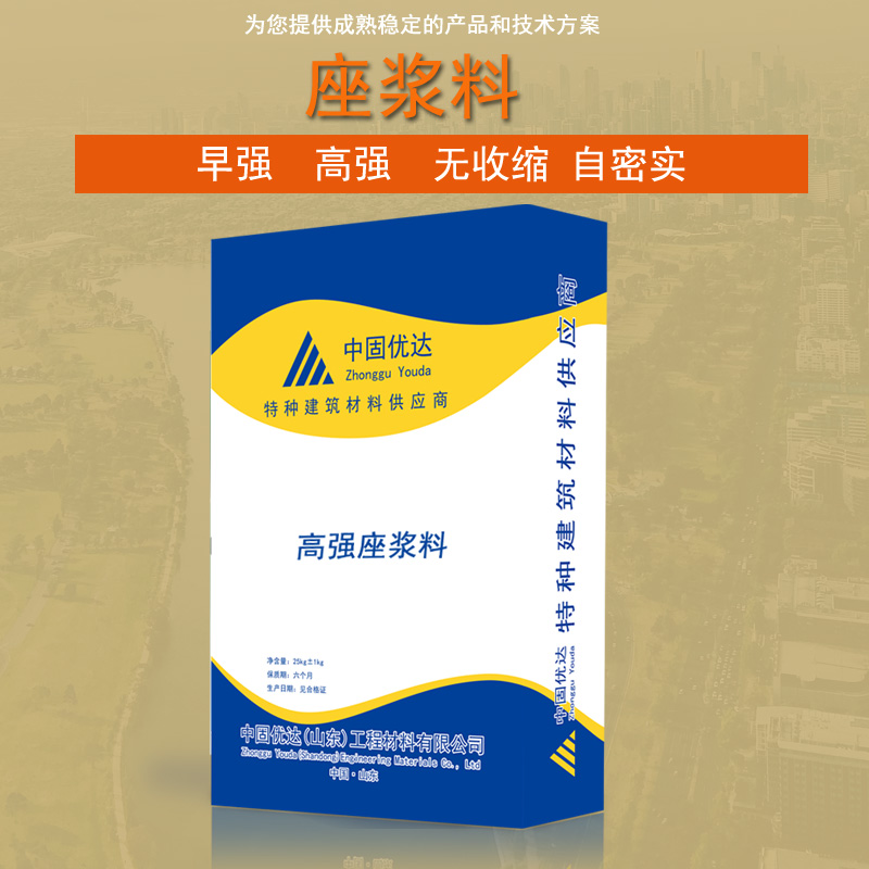 座漿料是灌漿料的一種,由水泥作為結(jié)合劑、高強(qiáng)度細(xì)骨料、復(fù)合膨脹劑、減水劑等摻合料及其他外加復(fù)合材料組成的水泥基干混料,具有早強(qiáng)、高強(qiáng)度、微膨脹、無(wú)收縮、不流掛、易施工等性能,加水?dāng)嚢韬缶哂杏|變性、可塑性,硬化性保水性好,座漿料的使用可以避免其他灌漿料流動(dòng)性過(guò)大,施工不易,顆粒太粗, 粘性差,泌水嚴(yán)重,開(kāi)裂爆倉(cāng)等現(xiàn)象。
